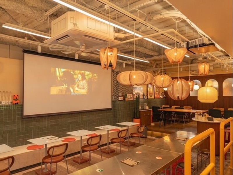 120インチのプロジェクターやマイクの無料貸し出しも可能で、忘新年会や結婚式の二次会など、各種宴会に対応します。