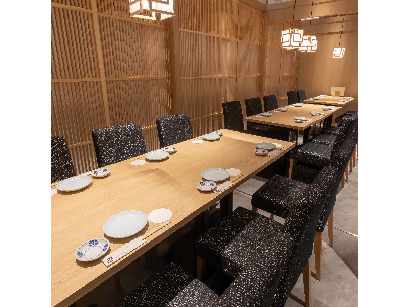 全席個室の白木を基調とした和モダンなプライベート空間で、少人数から28名の団体様までご利用可能です。