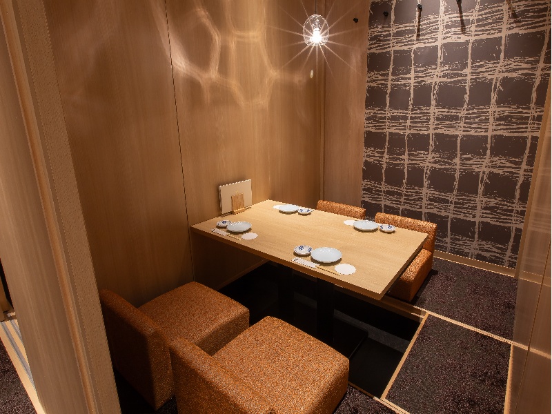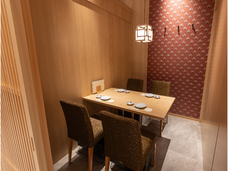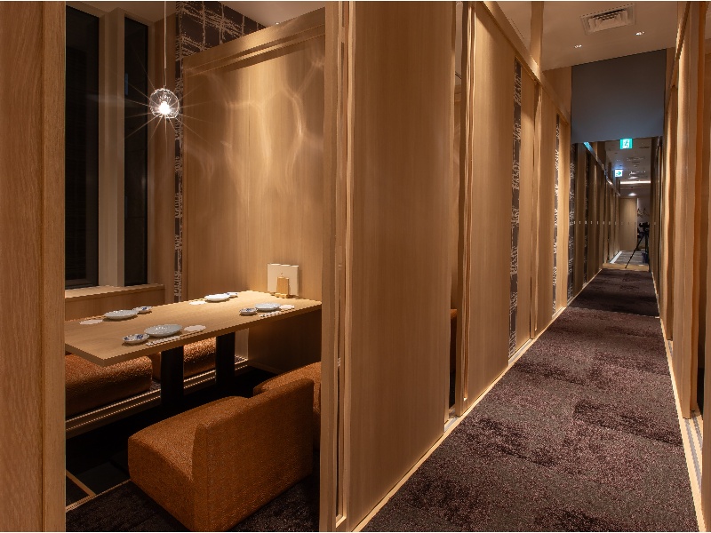 全席個室の白木を基調とした和モダンなプライベート空間で、少人数から28名の団体様までご利用可能です。