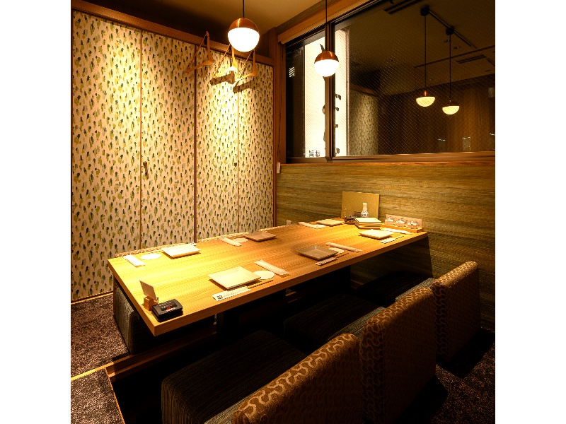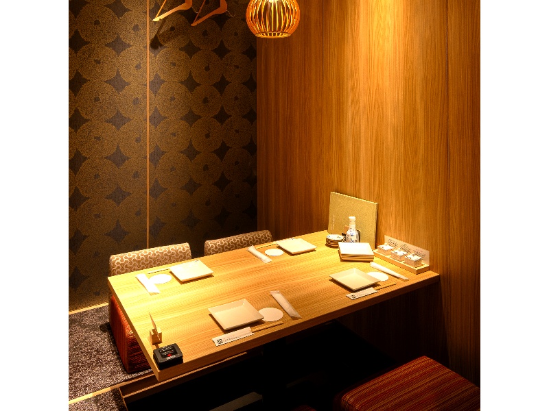 【京風創作和食×全席個室】伝統的な和食に洋の素材を組み合わせた優美な和洋折衷創作料理とお客様のお好みでペアリングできる厳選された充実のドリンクラインナップ。おこもり感あふれる上質なプライベート空間が広がる個室でこだわりの創作和食を心ゆくまでお楽しみください。