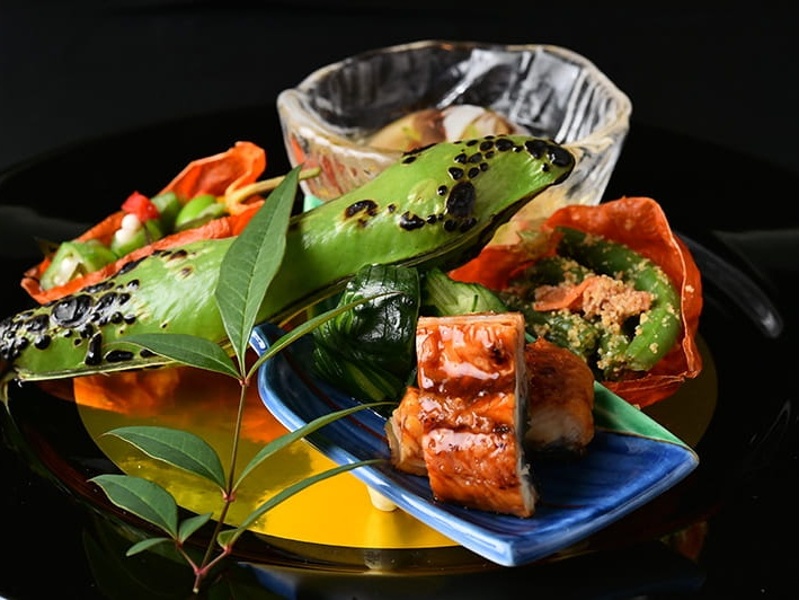 お客様だけのプライベートな空間で、旬の食材を活かした創作会席料理をゆっくりとご堪能いただけます。料理長が心を込めて作り上げる、信州の恵みをふんだんに使った会席料理は、一皿一皿が目にも舌にも美しい彩りです。