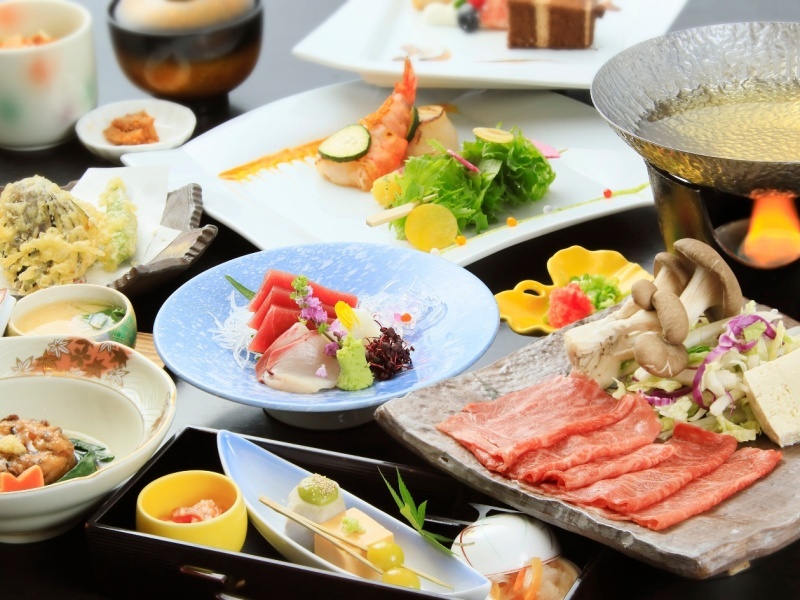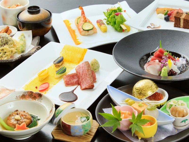 季節の美味しい食材を味わっていただくために、朝食からランチ、ディナーとスタイルを変えて甲府の伝統料理から和食、洋食、スイーツなど多彩なお料理とお飲み物をご用意しております。 -